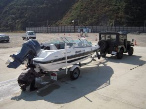 以前もボートをもっており、ジープで引いてスロープから下していましたが、非常に大変でなかなか海にだそうと思えませんでした。