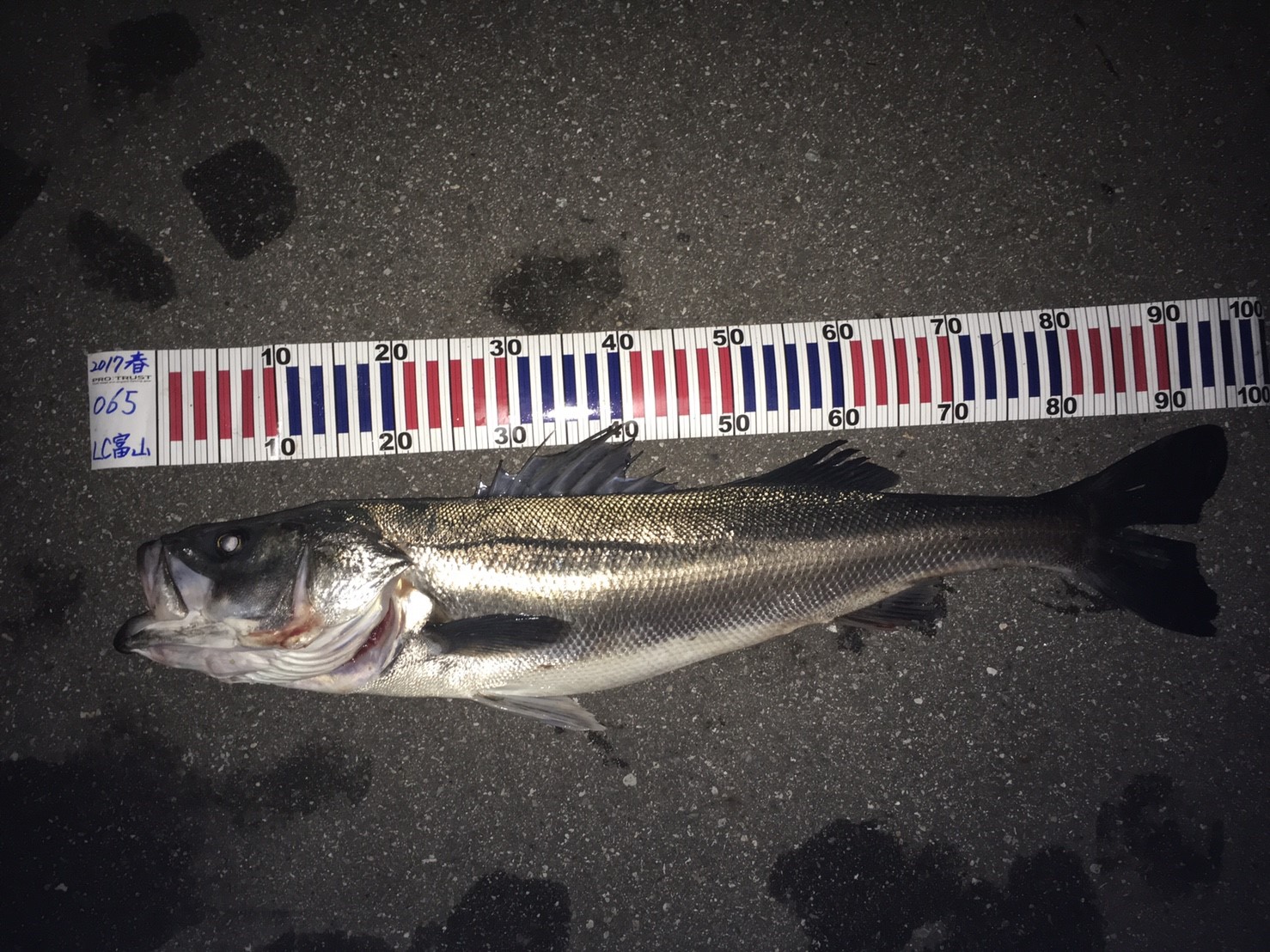 富山のモニターの江野本氏より上顎測定で95㎝のシーバスの釣果が届いたのでご報告させて頂きます。
