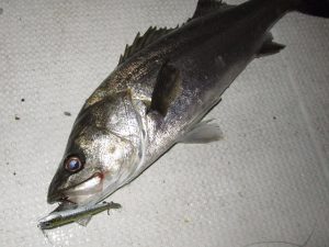 リアルフォルムで1直線のトレース、確かに釣れます。横の動きだけがルアーの動きではありません。魚からしてみれば、進んでいるのも生命感ある動きです。