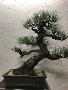 これは手入れが必要な黒松です。芽を摘まないといけません。幹が太く、樹齢もそこそこ長く気に入っています。