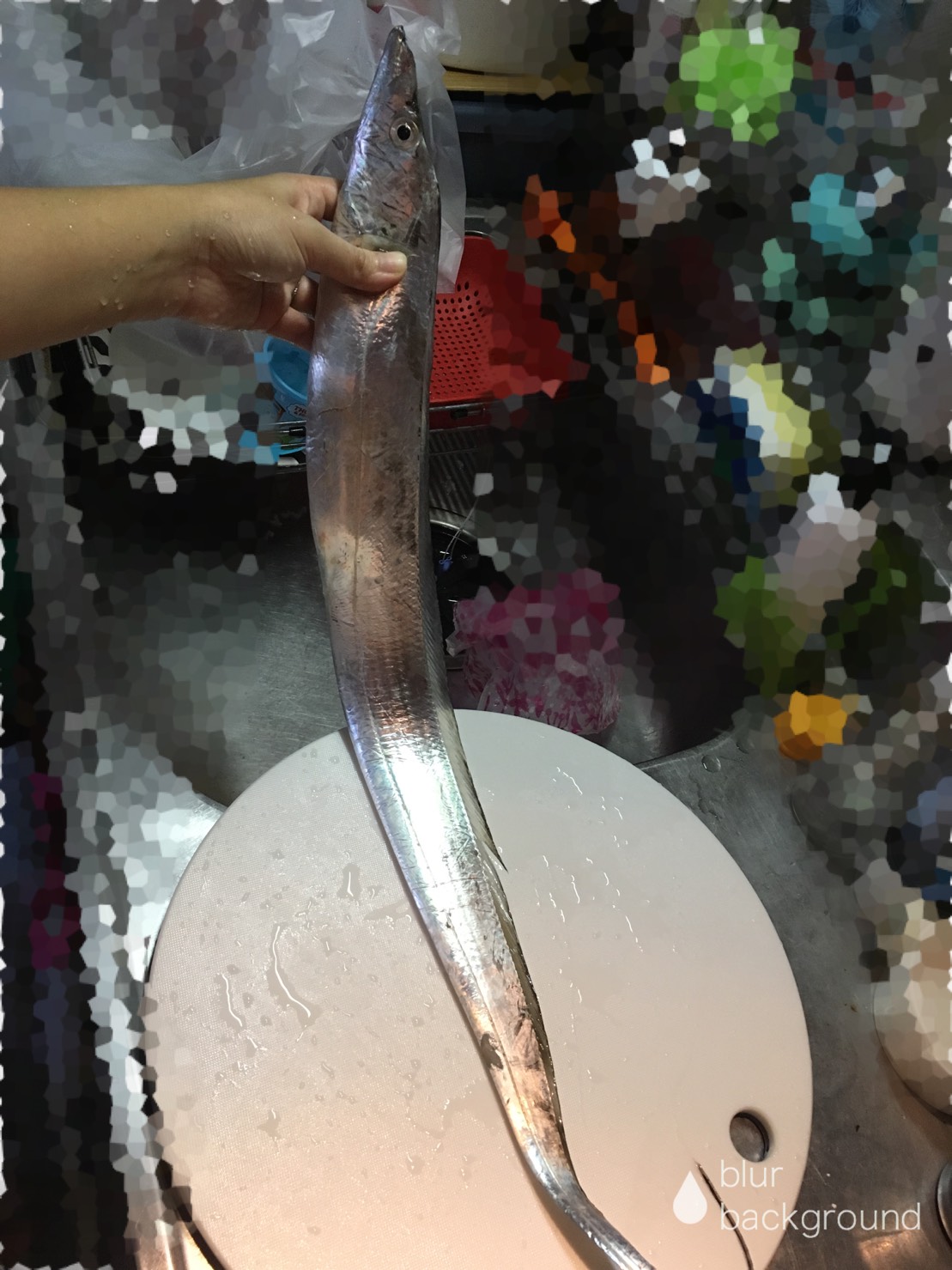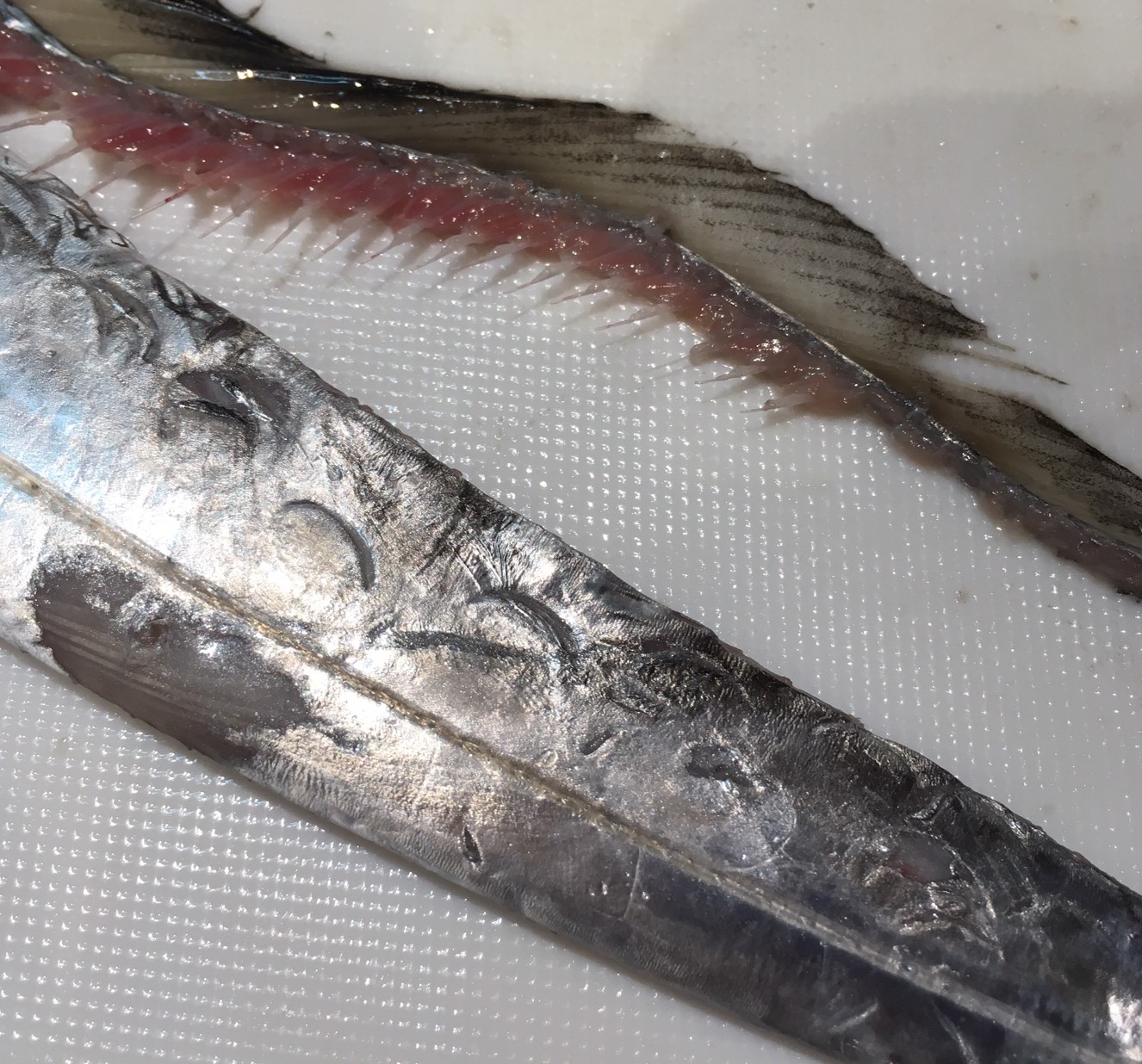 ながーいお魚、もちろんまな板に乗り切りません。
