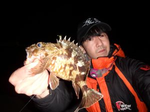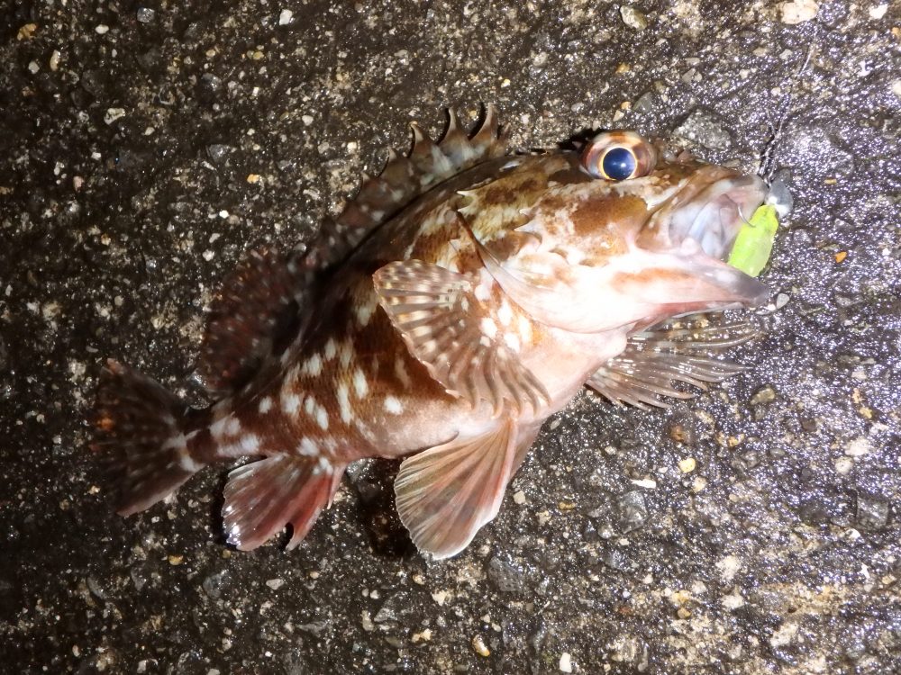足下の護岸際を移動しながら、ボトムのズル引きをやっていくと、タフコンディションながらもポツポツと釣れ、一時間あるなしの時間でカサゴ、ソイが狙い通りに遊んでくれた。