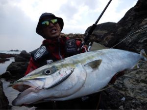 フッキングもバッチリ。後は波のタイミングを見計らいランディングポイントに一気にズリ上げた。