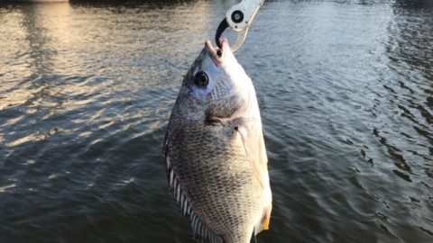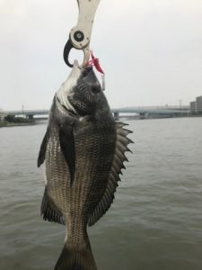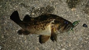 タックルは、PE1号程度に16ポンドのリーダーをセット。リグは1.6gのバス用のジグヘッドを使用。水深2m程度のポイントを探りました。