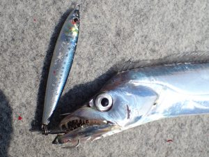 どうやらボトム付近に群れがいるらしく、早いアクションよりも遅めのアクションが、好みだったようで、「メタルアディクト02(30g、40g)」に好反応でした。