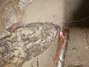 この日は残念ながら、シーバスは出なかったもものUNICORN PLATE 17gや21gでボトムを丁寧にやっていると、マゴチがヒット。