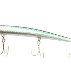 サヨリス独特の微ロールアクションを踏襲し、よりリアルフォルム、確かなシャローレンジキープ性能を備えたモンスター攻略モデルです。初回は大型トレブルフックを3個備え、よりショートバイトをものにするシリコンチューブ装着のカスタムモデルで発売。通常はトレブル×2のノーマルセッティングでもカスタムセッティングでも変わらないナチュラルアクションが魅力です。リアルベイトサイズのサヨリをイミテートしたナチュラルフォルムにより182mmながら大きさを感じさせず、中~モンスターまで確実にアプローチします。シンペン+ジャークベイトとしてオフショアでの実績も多数です。ヘビーウェイトモデルとして54gバージョンもラインナップ。ボディーは中空ながらワイヤーを貫通させる事によりモンスターに耐える強度を確保しています。