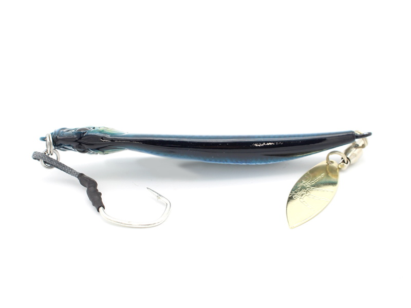 type-01のコンパクトさ、不規則なフォール、リトリーブ時の動きはそのままに近海のライトジギング、本格的なショアジギングモデルとして開発。独自の左右非対称ボディーアクションは、圧倒的で万能な釣果を叩き出します。本体に大型のパイクフックを標準採用。更にはヒラリとベイトライクなアクションに変えるオリジナルゴールドブレードを標準装備しています。フォルム、形状、使いやすさ。さらにリアルさを加え、様々な魚種にアプローチします。