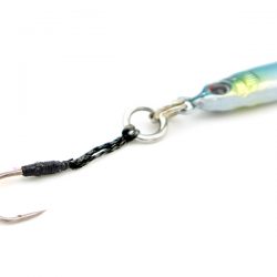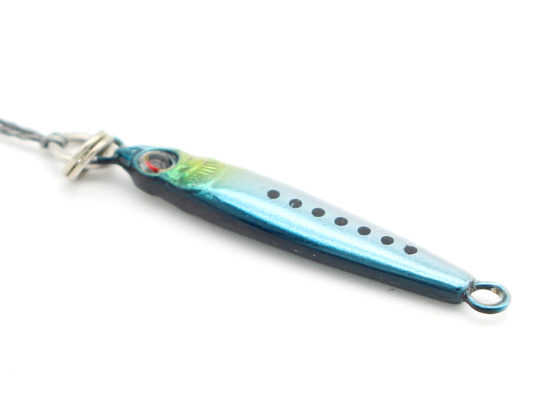 驚愕の指のひらサイズでリアルフォルム。更にはキビキビアクションする最小級メタルジグがマイクロアディクトです。魚の群れに遭遇するとボトムまで落ちる事無く、バイトが連発。まさにサビキやエサと同類のメタルジグです。その軽さ、小ささに加え、ティンセルフックを標準採用し抜群の吸い込みを実現。連結を打ち抜きリングにする事で絡みも軽減しています。