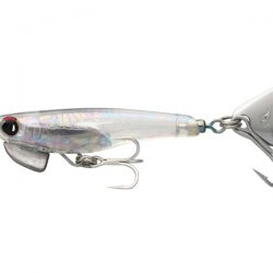 フックセッティングにもこだわりました。ブレードへのバイトに対応するダブルフック と、フッキングを重視した腹部のトレブルフック。ベイトライクなフォルムと、ブレード によるアピール力を融合させています。ただ巻きはもちろん、ボトムバンピングやリフト アンドフォールを織り交ぜての、マニュアル操作での多彩な釣りも展開可能。樹脂ならで はのスローな攻めと横倒れしないバランス設定が釣果を伸ばします。