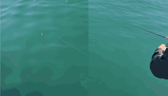 The transition from a fleeing baitfish movement into a fall effectively targets squid and triggers strikes.