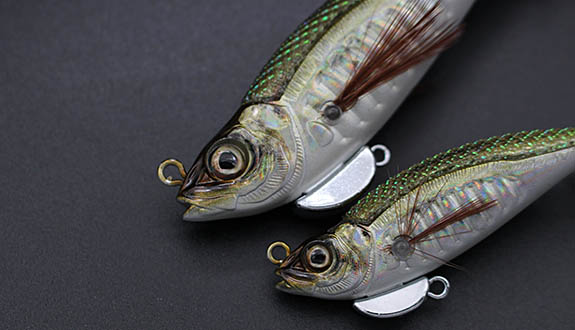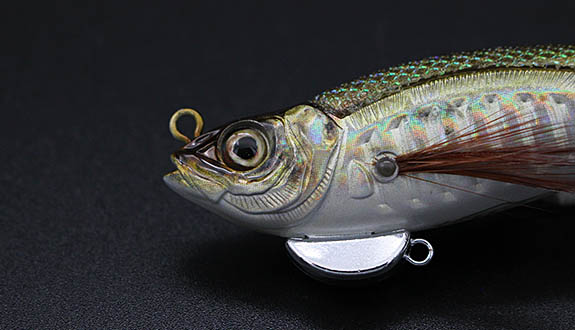 By attaching the included keel blade, the lure gains more than just flashing appeal. The blade firmly grips the water and acts as a keel, moderating rod input and completely transforming the action. The result is a crisp, well-defined darting motion that can be produced through lure-style rod-tip control.